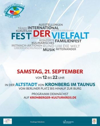 Die Eröffnung der Interkulturellen Wochen finden in diesem Jahr erstmals in Kronberg im Taunus statt – und bereits zum dritten Mal im Hochtaunuskreis. Der Hochtaunuskreis, die Stadt Kronberg und der Kronberger Kulturkreis laden alle Familien herzlich ein, einen Tag voller Freude, Begegnungen und unvergesslicher Momente in der Taunusstadt zu erleben.