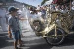 Ein mobiles, musikalisches Feuerwerk! Entdecken Sie dieses fahrende One-Man-Show-„Orchester“! Wenn der charmante Pianoteur auf drei Rädern überraschend um die Ecke gerockt kommt, raucht, blubbert und schneit es. Eine klangvolle Performance: Rock’n’Roll, Elektro, Jazz, Metal, Pop, Musette, Funk, Blues, Soul, Rap, Reggae, ... Am Lenkrad sitzt ein versierter Musiker, der mit spontan improvisierten Medleys sein Publikum mit Leichtigkeit mitnimmt – Situationskomik inklusive! Die Createure griffen tief in die Schatulle recycelter Musikinstrumente und lieferten so diesem radelnden Musiker das Handwerkszeug, um die Menschen zu beglücken.