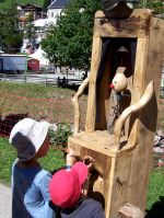 Zehn Marionetten, menschengroß und interaktiv. Ein begnadeter Baumeister verwandelte jüngst allerlei Recycling-Materialien aus Eisen, Blech, Holz, Treibholz …, ausgediente Alltagsgegenstände wie Töpfe, Rohre, Kannen, Skier, Seile, Sprungfedern … in lustige Gestalten: Der Einbeinige Skifahrer, der Saug-Staub-Schlagzeuger, die Teekannen-Rüssel-Nase, der Werkstatt-Gärtner…, sie alle laden den neugierigen Besucher zum Spielen ein. Die verspielten Marionetten entfalten ihre quirlige Lebendigkeit unter den geschickten Händen der kleinen und großen Kinder.