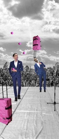 Die zwei berühmten und beliebten jonglierenden Eckensteher aus Wuppertal stellen sich der Herausforderung. Nach Jahrzehnten akribischer Gehirngymnastik im Namen der Unterhaltung pulverisieren der Große und der Kleine sämtliche Standards. Kapriolen vor die Säue oder Bauklötze fürs Volk: Das schlägt dem Fass die Zähne aus. www.spotthedrop.de