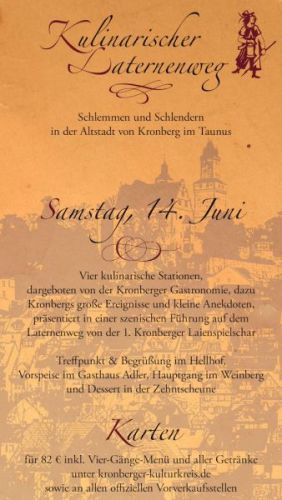 Kulinarische Führung auf dem Kronberger Laternenweg. Schlemmen und Schlendern in der Kronberger Altstadt.